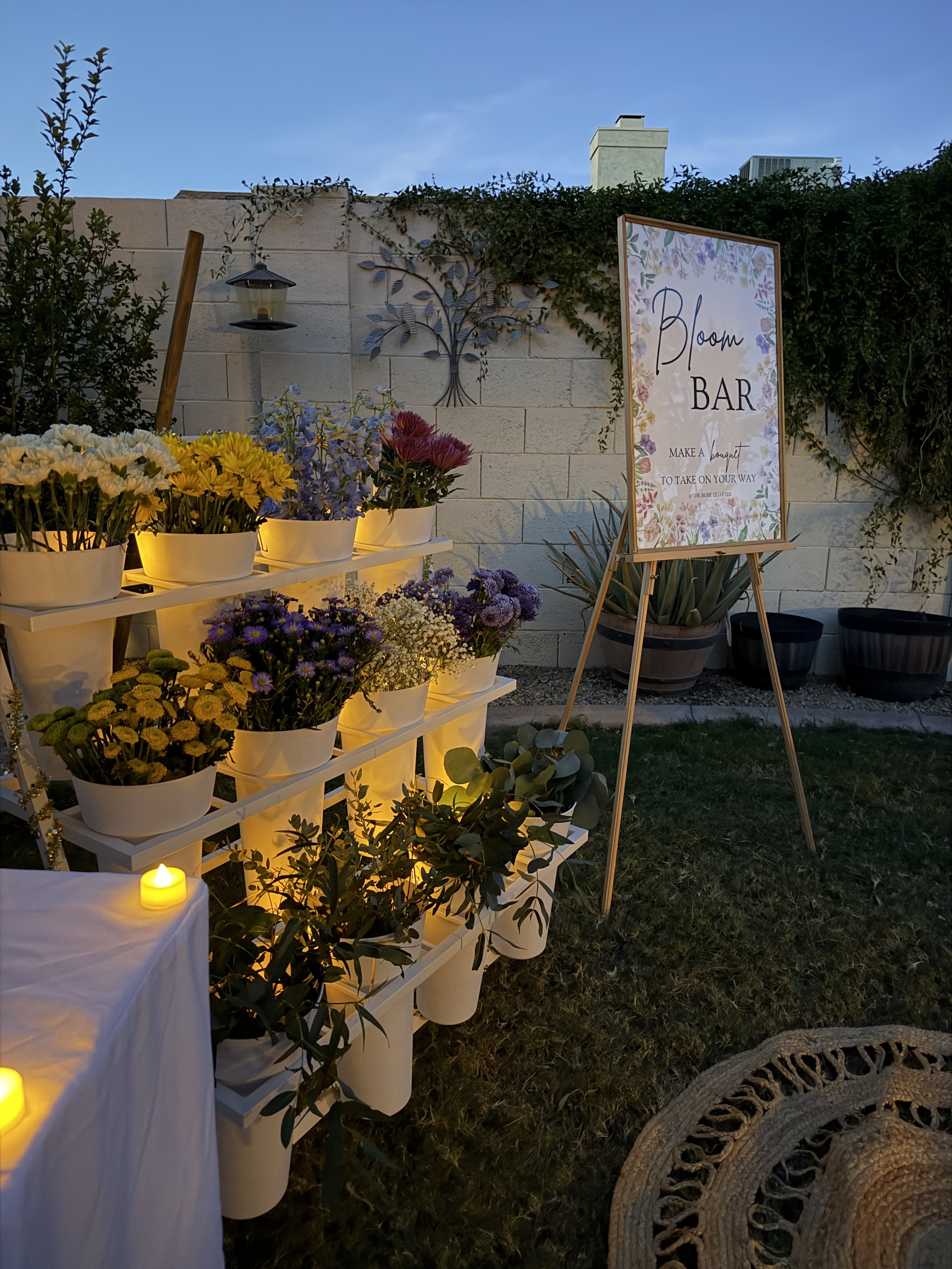 The mobile Boom Bar is not just a flower station, it’s an interactive floral experience where you and your guest become bouquet artists! Everyone gets to design their own custom bouquets by choosing a vibrant selection of farm fresh flowers and greenery.